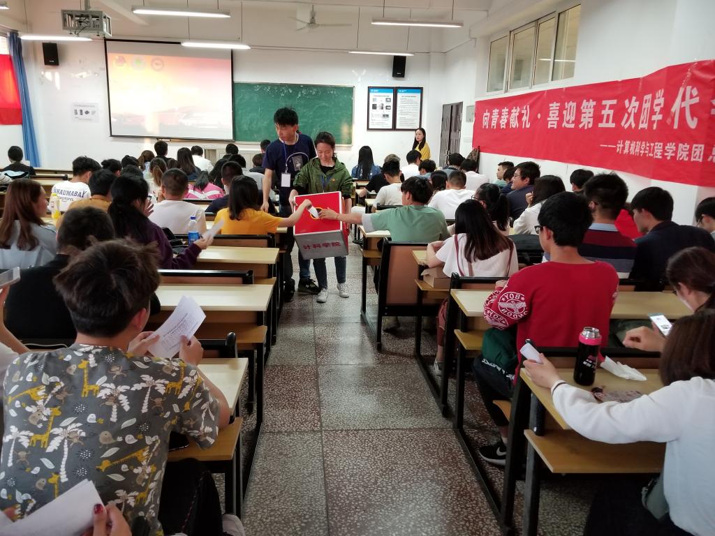 4月18日,计科学院团总支、学生会选区开展了校第五次团、学代会正式代表的选举工作,由28个团支部和班级的100余名团员、学生代表参加了选举,选举工作由团总支书记袁颖主持。校团委青年服务中心主任张专、团委组织部部长王燚,校学生会副主席何涛到场观摩。
