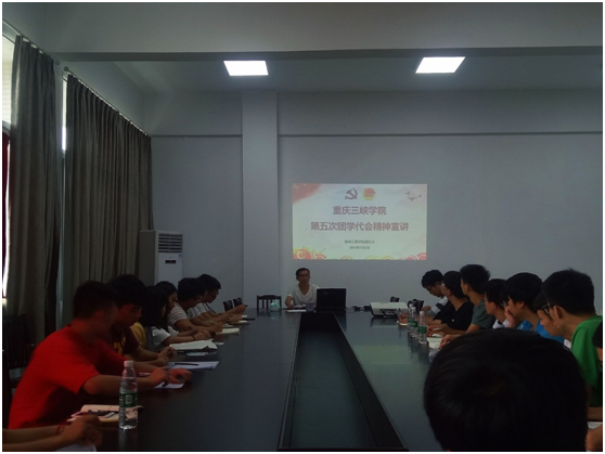 为深入学习贯彻我校第五次团学代会精神,增强我院团学干部综合素质和能力,2018年7月2日下午,我院团总支举行重庆三峡学院第五次团学代会精神宣讲会,宣讲会由学院团总支副书记张晓渊主讲,2018届团总支、学生会全体干部和部分班级团支书参加此次宣讲。