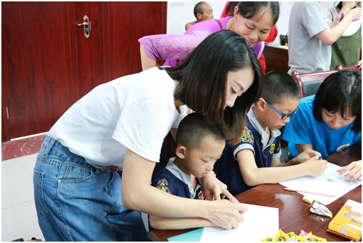 通过击鼓传花的小游戏,小朋友们依次进行了自我介绍,并进行了才艺展示。随后,实践服务团队员们同小朋友们一起折纸、绘画,分享彼此的成长故事。小朋友们的脸上挂着天真灿烂的笑容,他们就像是一个个小太阳,拥有孩子最本真的能量,给人温暖的希望。