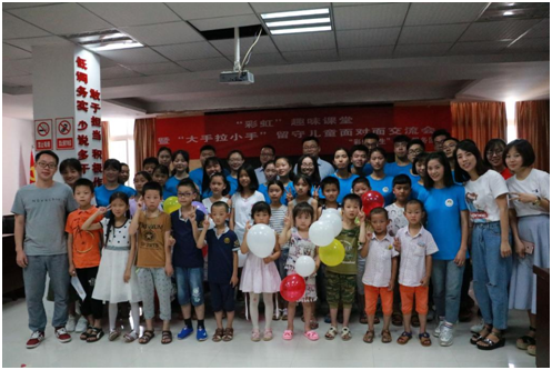 7月10日上午,重庆三峡学院2018年暑假“三下乡”社会实践活动“彩虹人生”实践服务团队员们与龙驹镇10余名留守儿童欢聚一堂,在龙驹社区服务中心开展了“彩虹”趣味课堂暨“大手拉小手”留守儿童面对面交流会。