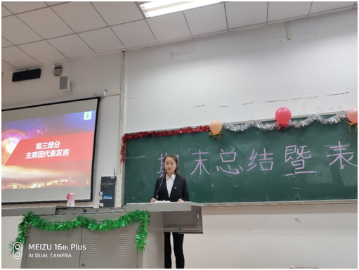 随后,团总支副书记张晓渊老师讲话,他对团总支学生会干部干事本学期以来所取得的工作成绩表示充分肯定,并代表学院对大家半年工作中的辛勤付出表示感谢。同时,对干部干事提出两点要求和希望:一、团总支学生会既是平台又是舞台,希望大家既通过工作锻炼个人能力,又要在各种活动、工作中展示自身的才华;二、希望干部干事对自身严格要求、增强自律,在学习上、工作上、生活中起到模范带头作用,坚决遵守学校学院各项规章制度和纪律。他预祝大家元旦快乐,并在即将到来的期末考试中取得好成绩。