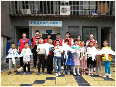志愿者引导小朋友们先做好了风筝的骨架,并且让他们在风筝纸上绘上了自己喜爱的图案。这周上课的内容,小朋友们非常感兴趣,制作了属于自己的风筝。风筝制作结束之后,志愿者与小朋友们一起合影留念。