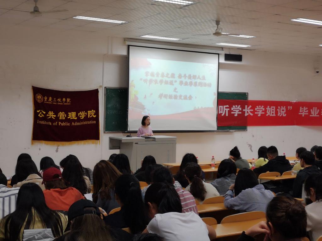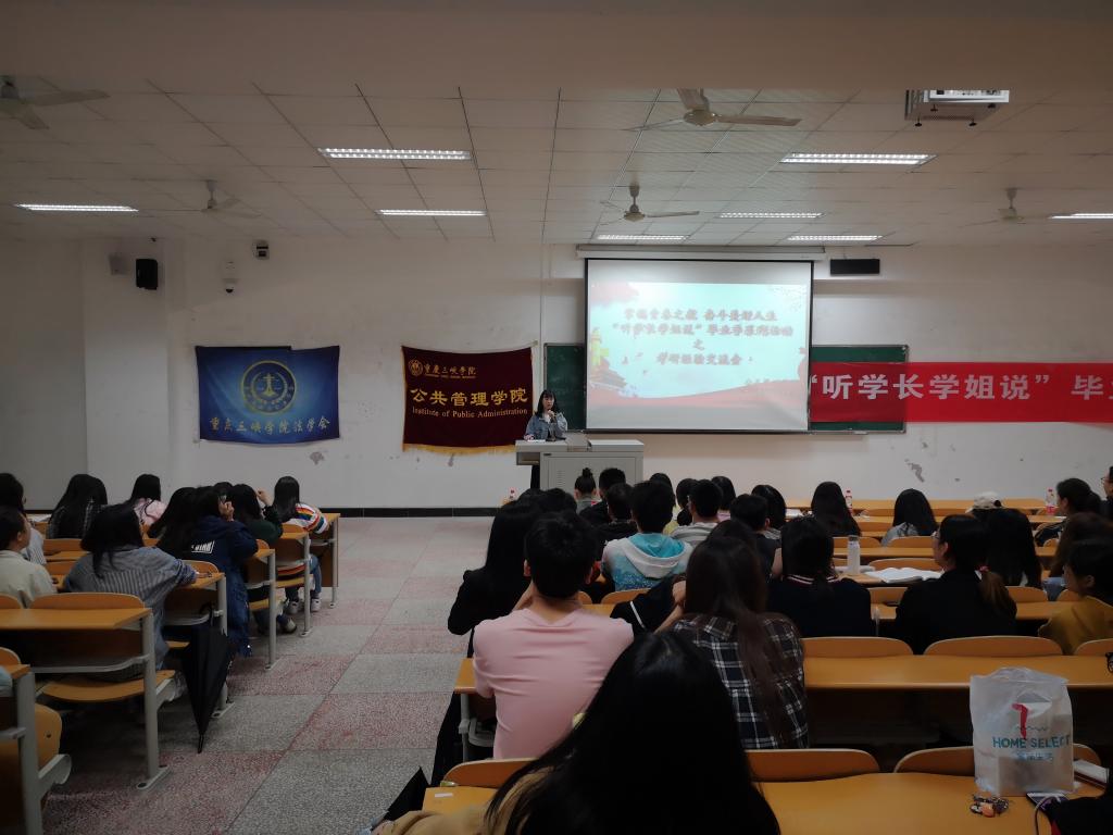 为了加强大家对考研的了解,为2016级有志于参加研究生考试的同学传授经验,同时营造公共管理学院积极向上的学风,公共管理学院于2019年5月13日在2教204举办了“听学长学姐说”毕业季系列活动之考研交流会。此次交流会邀请了我院辅导员杨杨,以及考研成功的2015级学生罗敏、姜敏桢、白雪瑞张萍等学长学姐。2016级意向考研同学和部分大一大二同学参加。