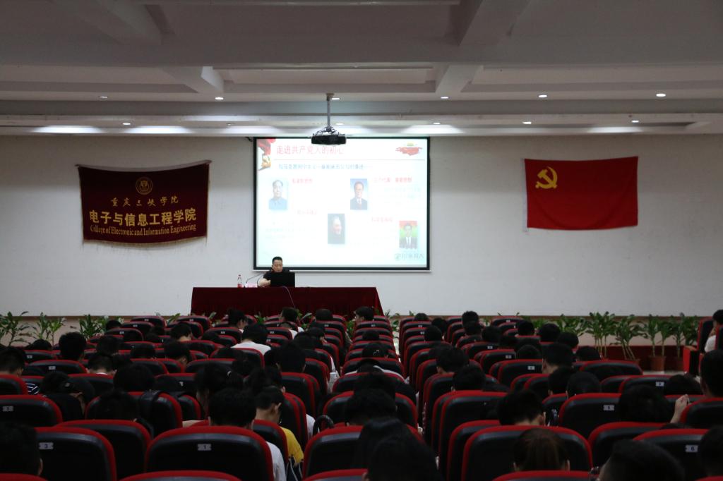 为深入学习宣传贯彻习近平新时代中国特色社会主义思想和党的十九大精神,锤炼忠诚敢于担当的政治品格,6月下旬以来,电信学院开展了党建带团建系列工作,学院党总支常务副书记周科同志以“共产党人的初心与使命”为题,在明辨楼2栋104学术厅为2017级、2018级团支部青年学生讲党课。