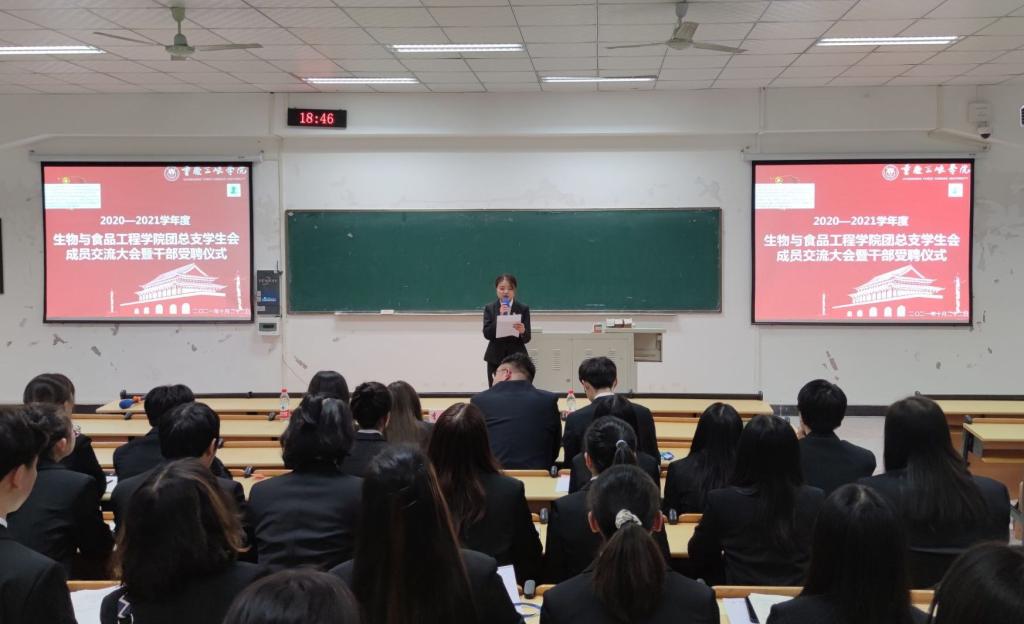 10月22日17:30,我院于明辨楼2栋207举行2020-2021学年度生物与食品工程学院团总支学生会成员交流大会暨受聘仪式。出席本次大会的有学院团总支副书记李华林老师,辅导员蒋园园老师及2020届团总支学生会全体成员。