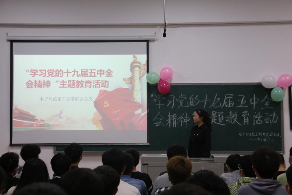 为深入学习宣传党的十九届五中全会精神,11月17日,电子与信息工程学院团总支在慎思楼5栋314室开展学习党的十九届五中全会精神主题教育活动,电子与信息工程学院部分团员代表参加本次教育活动。