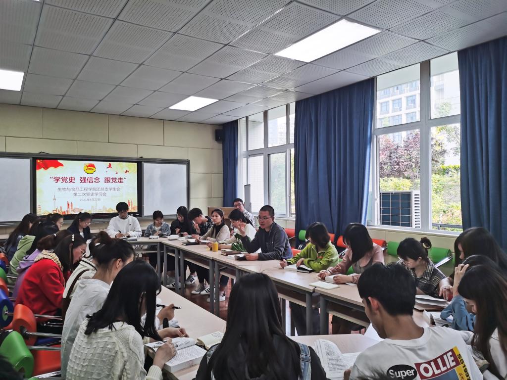 2021年4月22日17:00,我院团总支于慎思楼2栋216室开展第二次党史集中学习工作,学院团总支书记李华林老师领学,全体团学骨干参与。