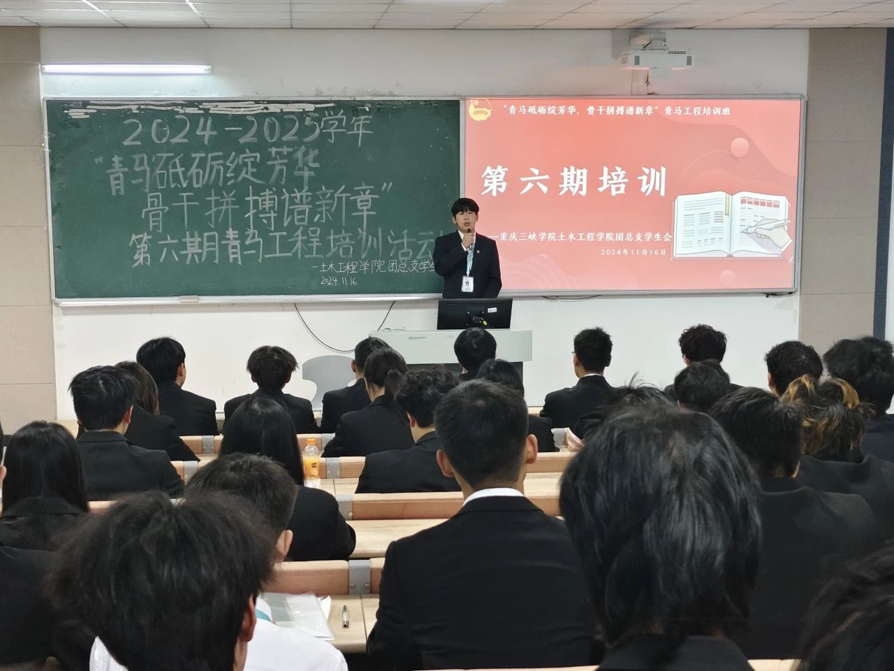 11月16日上午,土木工程学院团总支在博学楼1栋101教室成功举办“青马砥砺绽芳华,骨干拼搏谱新章”第六期青马工程培训。团总支学生会办公室负责人和新媒体中心负责人讲解公文写作的相关规范。土木工程学院一直高度重视学生管理工作,以“青马工程”为载体,不断加强对青年学生的思想政治教育,进一步引导学子深化思想认识,旨在通过针对性的系统化培训促进学生全面发展。