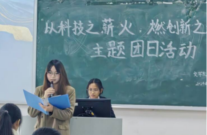 11月24日,文学院在博学楼1栋103室举办“以科技之薪火,燃创新之未来”主题团日活动。活动首先由文学院团总支(学生)副书记张家豪致辞,强调青年在科技创新中的关键作用,并鼓励青年积极投身于创新实践之中。随后,创新部负责人分享科技相关知识。活动中,同学们以班级小组为单位创作“科技小贴士”海报,并上台阐述设计理念,展现创新精神与团队协作能力。此次活动为同学们搭建了展示与交流平台,激发科技创新热情,提升团队协作能力,展望未来,文学院学子将持续为科技发展贡献力量。