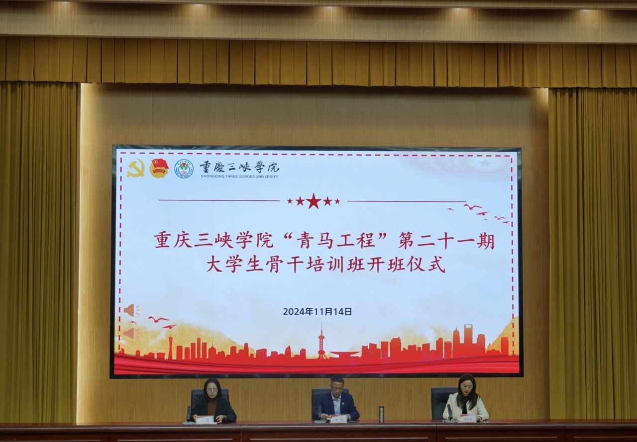 11月14日,重庆三峡学院“青马工程”第二十一期大学生骨干培训班开班仪式在博学楼群多功能厅举行。学校党委副书记付川、党委组织部、团委等相关部门同志及全体“大骨班”学员共同参与此次活动。