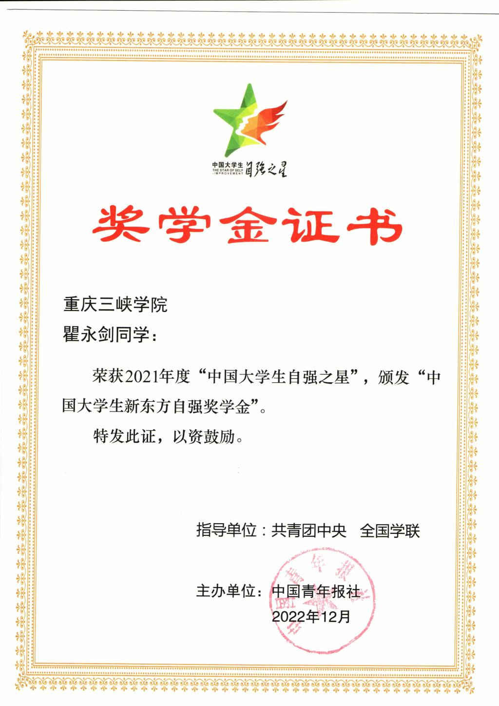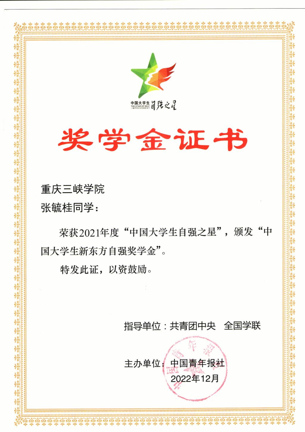 2021年度“中国大学生自强之星”奖学金图片