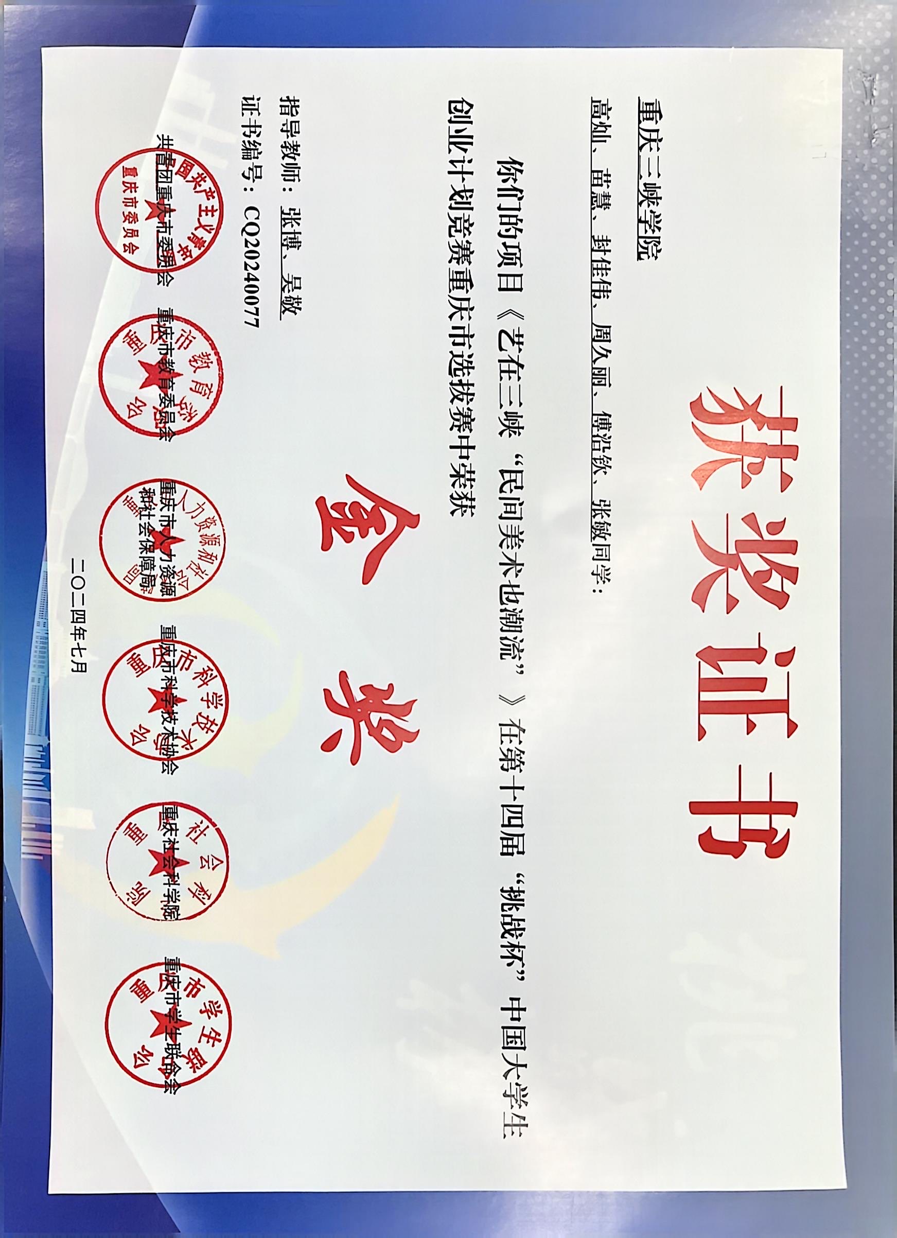 第十四届“挑战杯”中国大学生创业计划竞赛重庆市选拔赛金奖