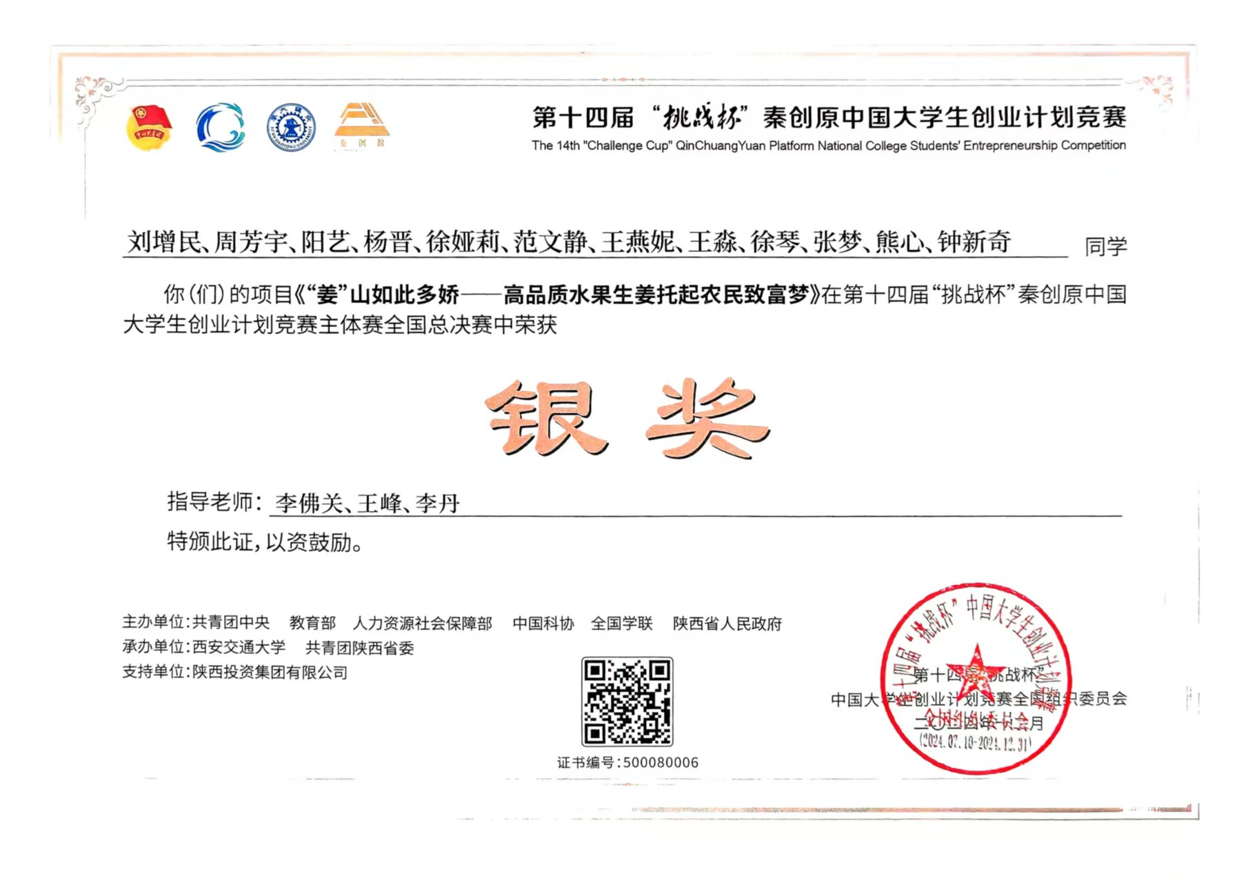 第十四届“挑战杯”秦创原中国大学生创业计划竞赛