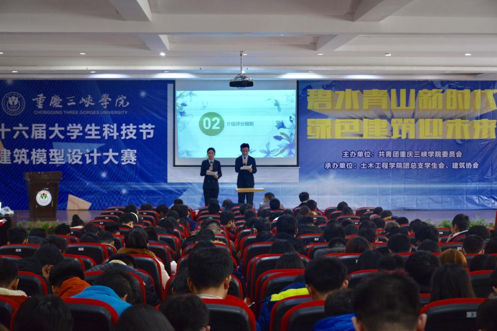 为丰富校园文化,进一步培养学生的“工匠精神”,近日,由团委主办,土木工程学院团总支、学生会承办的第十六届大学生科技节“碧水青山新时代•绿色建筑迎未来”建筑模型大赛决赛在第一学术报告厅举行。基建处、美术学院、土木工程学院的相关专家及老师担任评委。