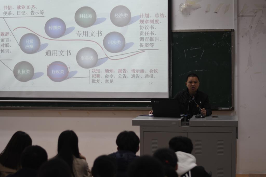 3月19日中午,美育课堂系列之应用写作技能培训在第二教学楼103教室开课,我校团委书记黄宇向参加培训的同学们授课。