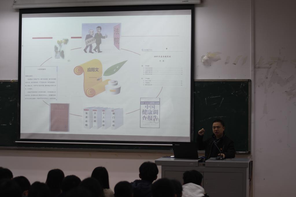 授课伊始,黄书记以史蒂芬·霍金为例阐述了“以理工科思维模式来引导思维,以文科思维来支配生活”的深刻含义,应用写作主要围绕“是什么”、“怎么了”、“如何办”进行生动讲述。