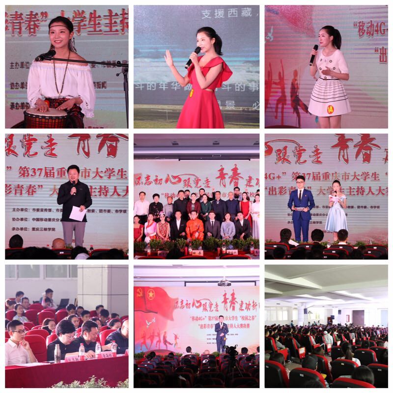 4月27日下午,“不忘初心跟党走 青春建功新时代”“移动4G+”重庆市第37届大学生“校园之春”文化艺术体育活动之“出彩青春”大学生主持人大赛决赛在我校第二教学楼104报告厅隆重举行。