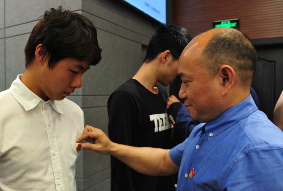 崔广平亲自为新团员佩戴团徽,并寄语青年。他指出,广大团员青年要坚定理想信念,让奋斗在成长中闪耀光芒;要坚定使命担当,让奋斗在成长中充满力量;要坚定求实创新,让奋斗在成长中开花结果。全校团员及团干部要以实现中国梦为主线,步伐一致朝着总书记的既定目标不断奋斗、不断前进。