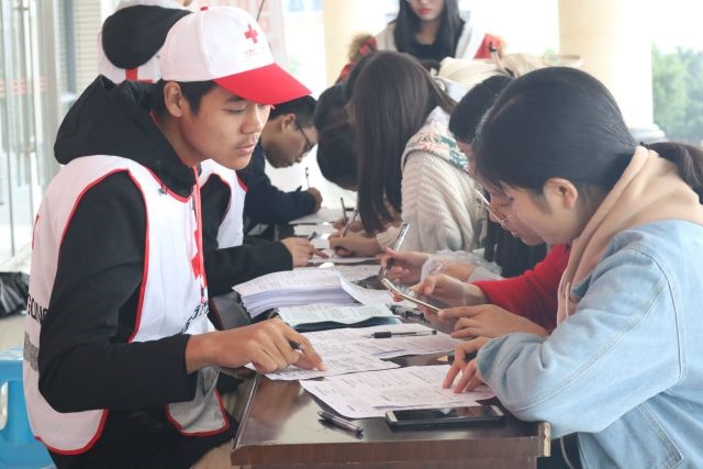 进入11月以来,我校多场纪念活动先后登场。11月7日,我校408名志愿者完成造血干细胞血液样本采集。11月11日,206名同学参加万州区中心血站无偿献血活动,总献血量达41200ml。11月30日,与万州红十字会一起举办“因为‘艾’,一起爱”活动,关爱艾滋病病人群体,一起为“艾”发声!当晚,在多功能厅举办“青·聊”我们的志愿故事。