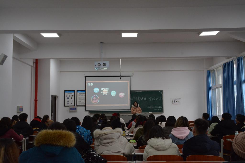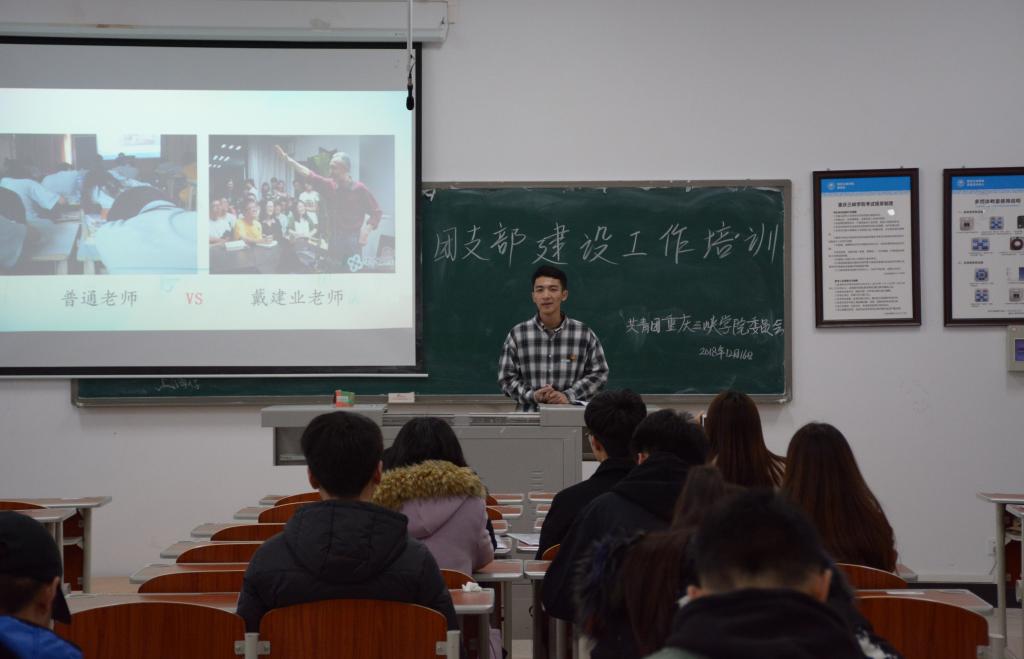 为深学笃用习近平新时代中国特色社会主义思想和党的十九大精神,学习贯彻习总书记“7•2”重要讲话精神和团的十八大精神,落实共青团重庆市第五次代表大会和重庆三峡学院第三次党代会、第五次团学代会各项决议,坚持和完善党领导下的“一心双环”团学组织格局,切实提升我校团支部建设工作水平,12月中旬,我校顺利开展了基层团支部建设培训工作,团委青年服务中心主任、(学生)副书记、组织部、联络部等主要干部负责讲授工作。