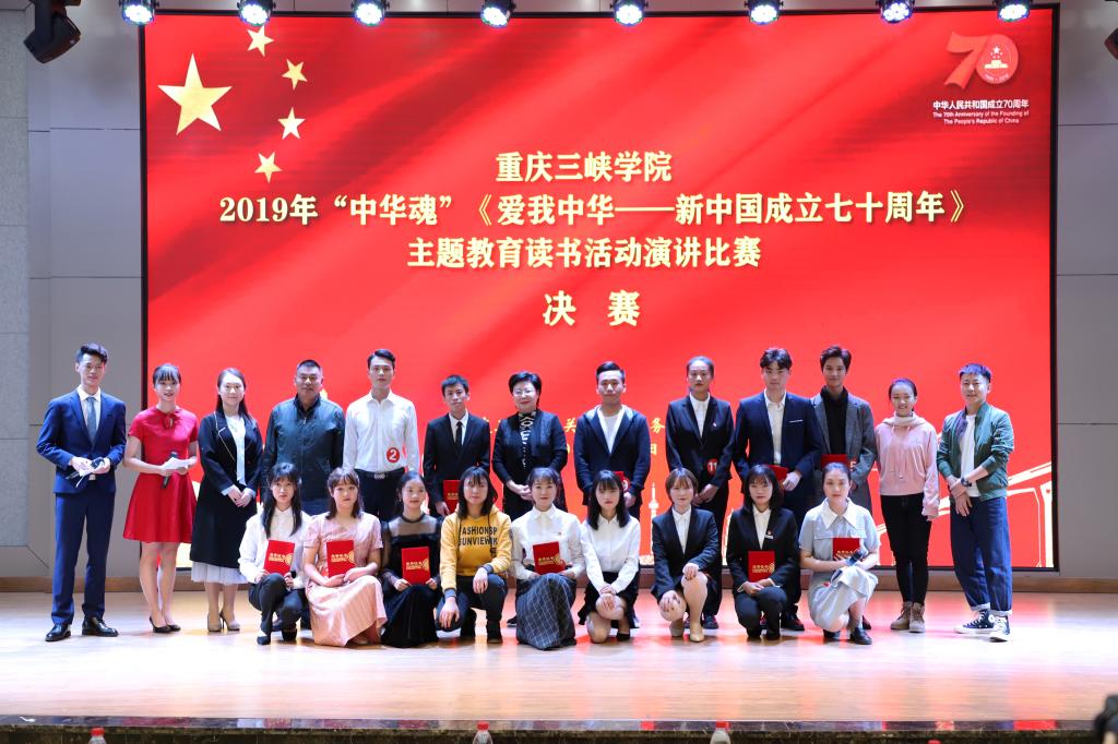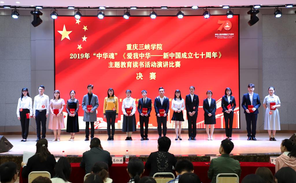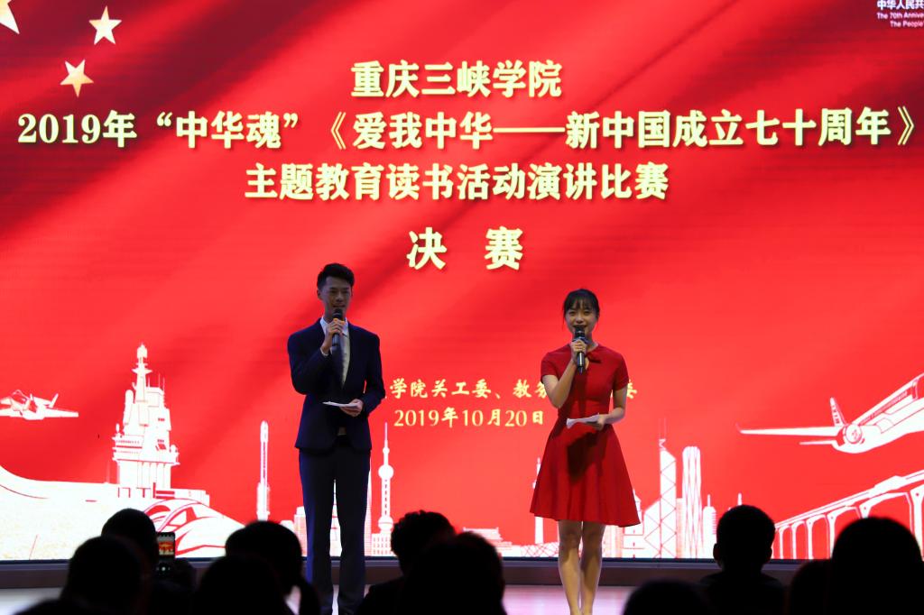 正值新中国成立70周年,为紧密结合这70年来走过的光辉历程,10月20日晚7:00在桂花苑食堂三楼多功能教室开展了由我校关工委、教务处、团委联合举办的“中华魂”主题教育读书活动演讲比赛决赛,旨在通过本次活动激励和引导广大青少年不忘初心、牢记使命,勇挑青春重担。万州广播电视台副台长,高级编辑,中宣部五个一工程奖评委,中国广播剧研究会副秘书长,重庆市第二届十佳新闻工作者潘海琳台长,我校关工委副主任(兼)秘书长高仁安老师,万州广播电视台主持人许延宏老师,我校传媒学院廖婷婷老师,校大学生艺术团前副团长罗梦婷及200余名代表学生参与本次活动。