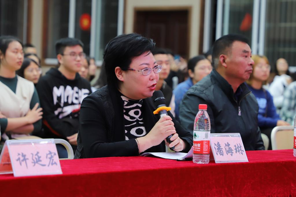 万州广播电视台副台长潘海琳点评到,演讲中充分展示了三峡学子的精气神,她肯定了同学们富有情感、铿锵有力的演讲。同时,潘台长就演讲方面的技巧提出了更好的建议,并鼓励同学们在以后的学习中继续努力,取得更加优异的成绩。