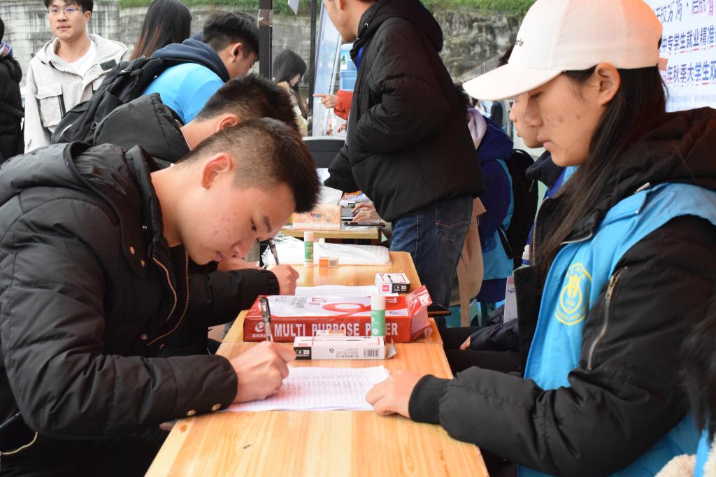 当天上午9:00,“千校万岗•启航青春”重庆市大中专学生就业精准扶贫帮扶行动暨2019年秋季大学生双选会在我校第一运动场举行。冬月的天气毅然寒冷,但难阻求职学子的热情。场内靓丽的风景线——志愿服务站、免费服务点、打印点等无时不在温暖三峡学子的求职心,井然有序的现场也成为三峡学子们求职路上最坚实的后盾。