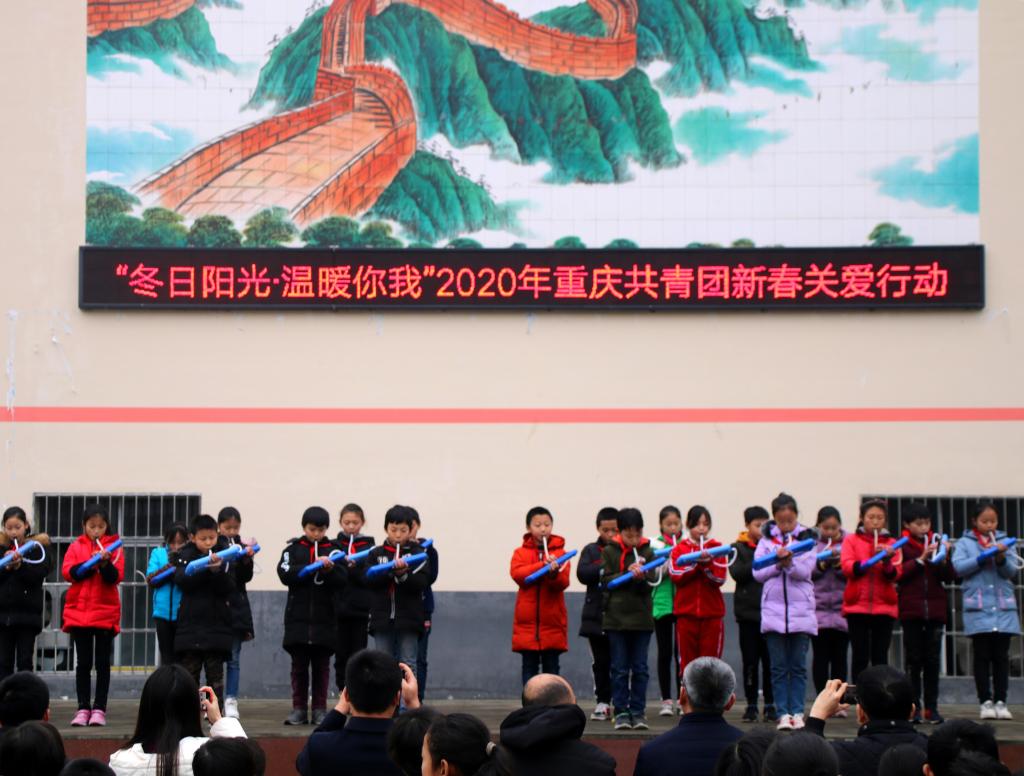 新年迈进新气象,团学踏上新征程。1月3日,我校赴重庆市开州区大进镇梓潼中心小学开展“冬日阳光·温暖你我”2020年重庆共青团新春关爱行动。团市委党组成员、副书记江光伟,学校党委常委、副书记崔广平,团市委高校工作部、团开州区委、区扶贫办等相关负责同志参加此次活动。