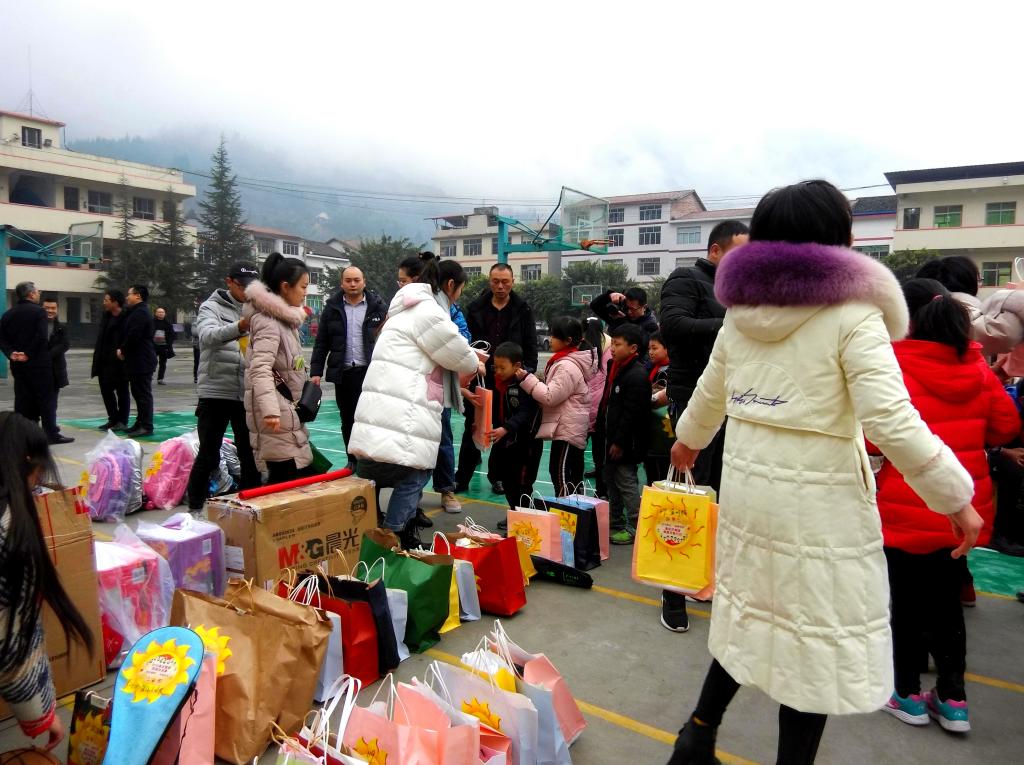 活动伊始,由梓潼中心小学校长致辞;接着,江光伟、崔广平等嘉宾与儿童代表进行交流并发放新年心愿礼物,孩子们拿着礼物给大家鞠躬,这是他们最真挚的感谢;学生代表发言,孩子们带来的歌曲及口风琴表演,都是无言中的感谢,感谢大家给予他们的深深关爱;然后,活动在我校的武术表演中接近尾声,孩子们表示一定要好好学习,用最优异的成绩来回报这一份份爱的礼物。