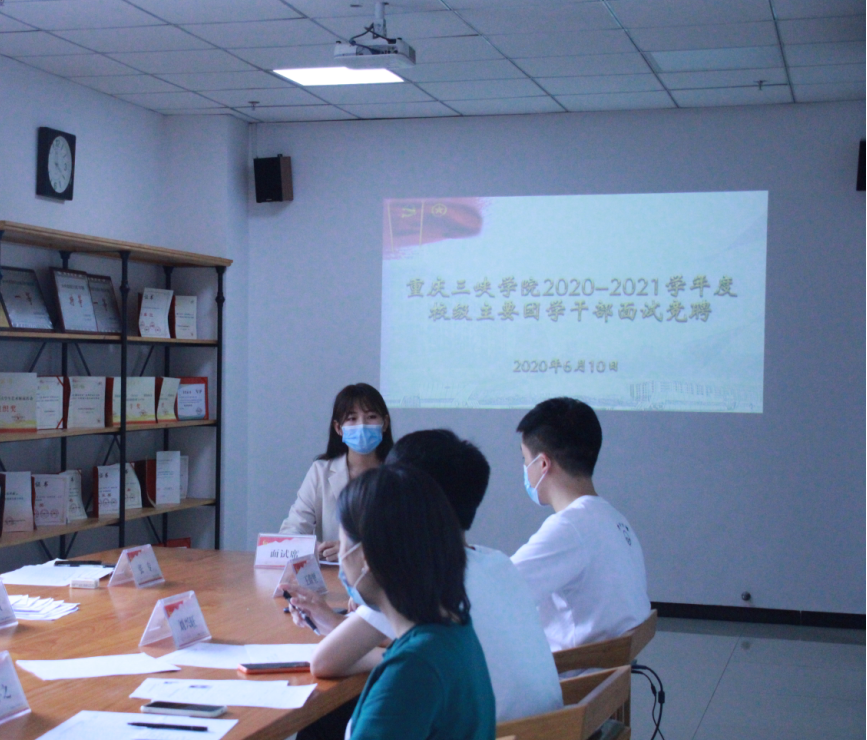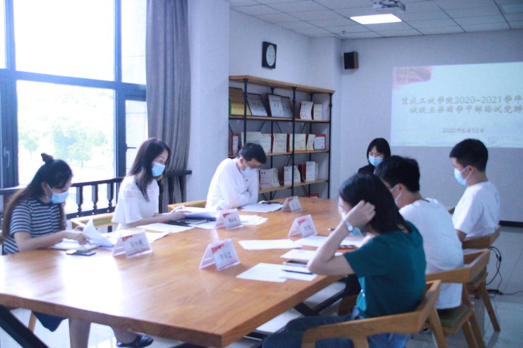 为扎实推进我校主要团学干部综合能力提升建设,主动适应新时代团学工作新要求,增强团学干部队伍的吸引力、凝聚力和战斗力,夯实锐意改革、团结高效、创新务实工作基础,进一步提升我校内涵式发展水平和核心竞争力,校团委于6月10日中午12:30,在科技楼402室开展了2020—2021学年校级主要团学干部面试竞聘工作。校团委全体工作人员担任现场面试评审;校级现任主要团学干部代表及通过资格审查的竞聘人员参会。