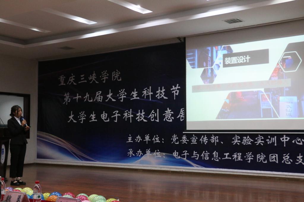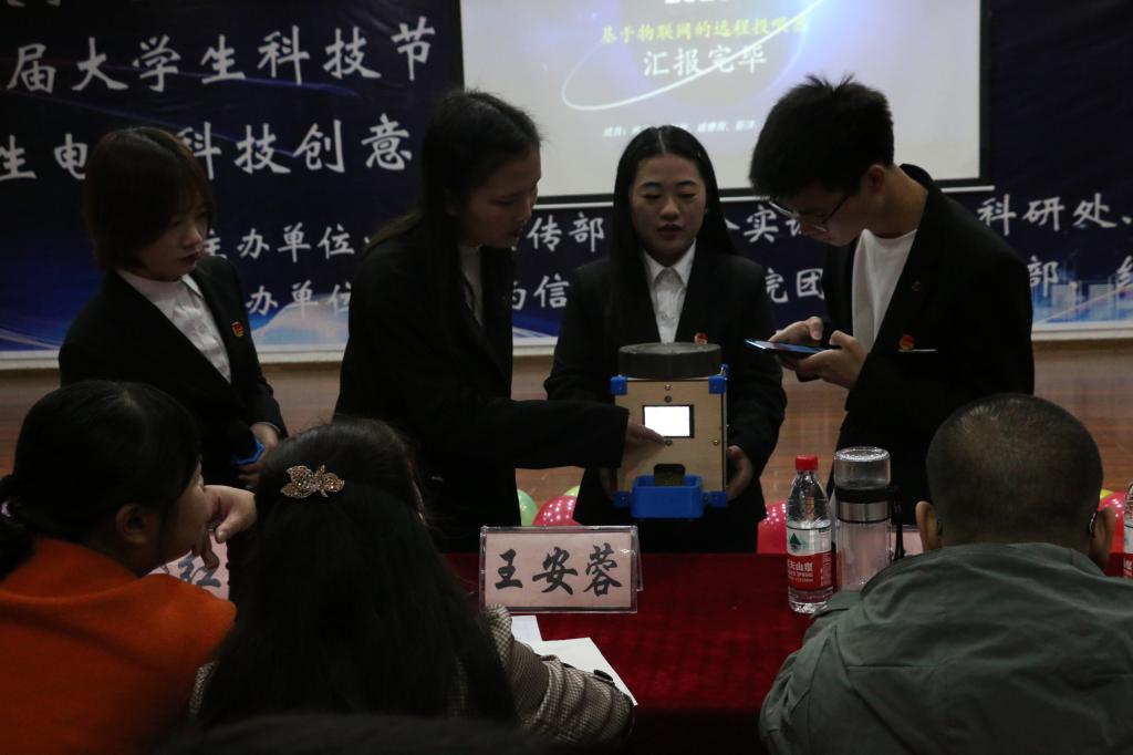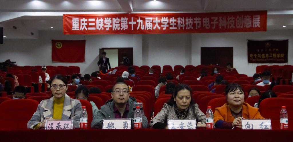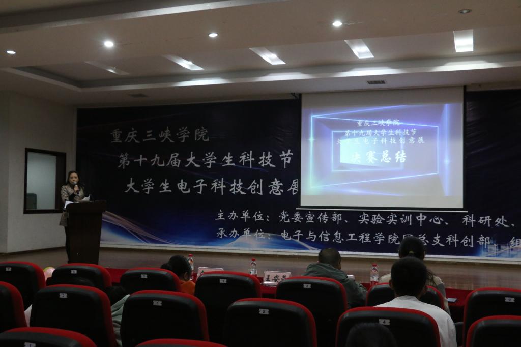 11月18日晚,由党委宣传部、实验实训中心、科研处、教务处、校团委联合主办,电子与信息工程学院团总支承办的第十九届大学生科技节——“大学生电子科技创意展”决赛在明辨楼2栋104学术报告厅举行。校团委(兼职)副书记、电信学院副院长魏勇,电信学院副院长王安蓉、团总支副书记向红等领导老师担任评委。