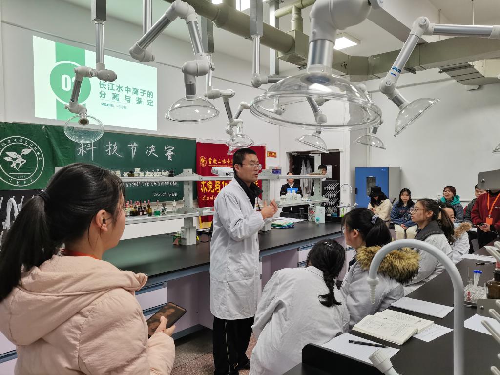 11月28日晚7点,由学校党委宣传部、实验实训中心、科研处、教务处、校团委联合主办,环境与化学工程学院团总支承办的第十九届大学生科技节之“环保之旅•邀你同行”决赛在慎思楼相关实验室顺利举办。