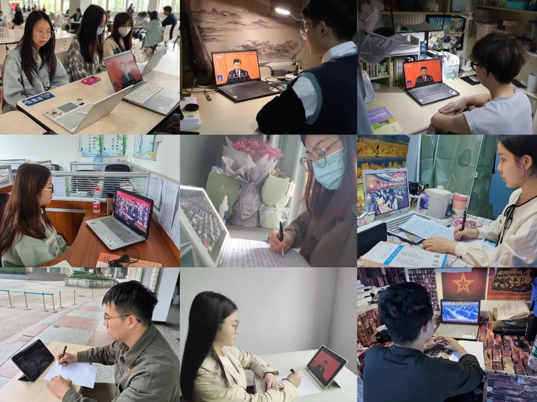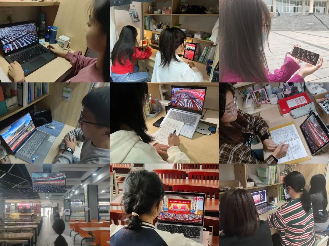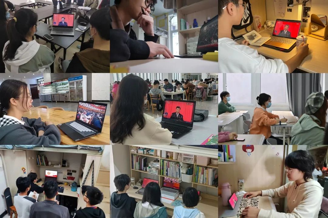 除会场外,我校青年学子自发在宿舍、自习室、教学楼等不同场地通过直播平台同一时间关注党的二十大。