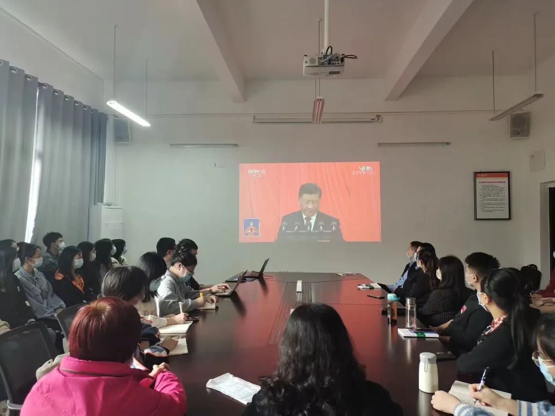 我校团委组织团员青年集中观看中国共产党第二十次全国代表大会开幕会,分为主会场(众创空间103室)、分会场(各二级学院团学阵地)同步进行。每一名青年师生聚精会神听报告、全神贯注做笔记,大家都倍感振奋,深受鼓舞。
