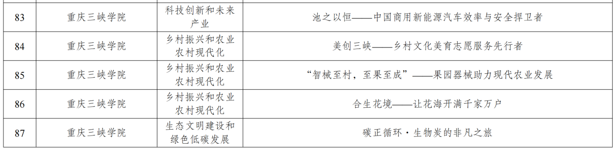 池之以恒——中国商用新能源汽车效率与安全捍卫者、美创三峡——乡村文化美育志愿服务先行者、“智械至村,至果至成”——果园器械助力现代农业发展、合生花境——让花海开满千家万户等7个项目获得银奖。