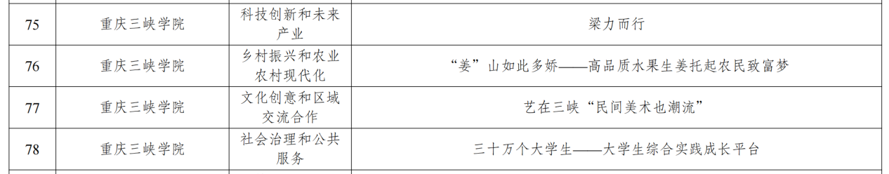 近日,第十四届“挑战杯”中国大学生创业计划竞赛重庆市选拔赛结果揭晓。我校项目梁力而行、“姜”山如此多娇——高品质水果生姜托起农民致富梦、艺在三峡“民间美术也潮流”、三十万个大学生——大学生综合实践成长平台获得金奖。