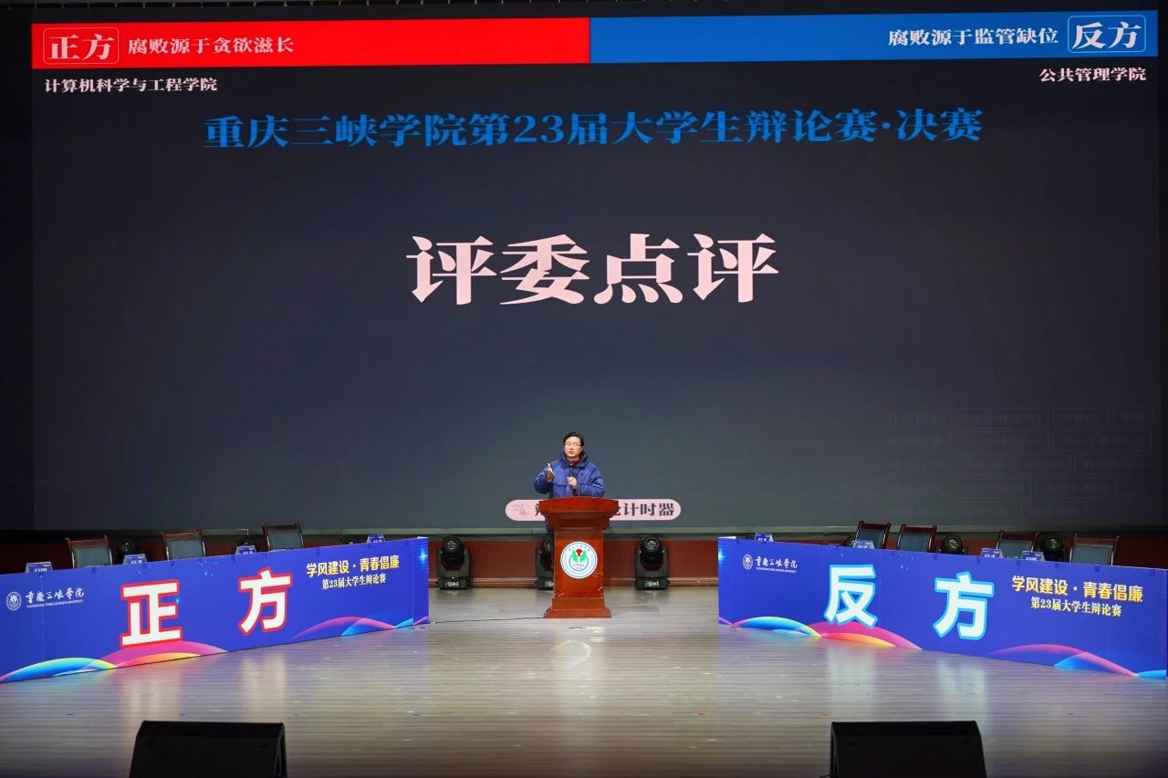 马克思主义学院孙佳老师针对两场辩论进行点评。他深入剖析了双方辩手的矛盾点,指出时代与个人之间的关系并非简单对立,个体在时代变迁中既是受影响者,也是时代的共同塑造者。同时,孙老师对出现腐败现象的根源进行多维度分析,并对关键理论进行了详细讲解,使辩手与观众对辩题有了更深刻的理解。