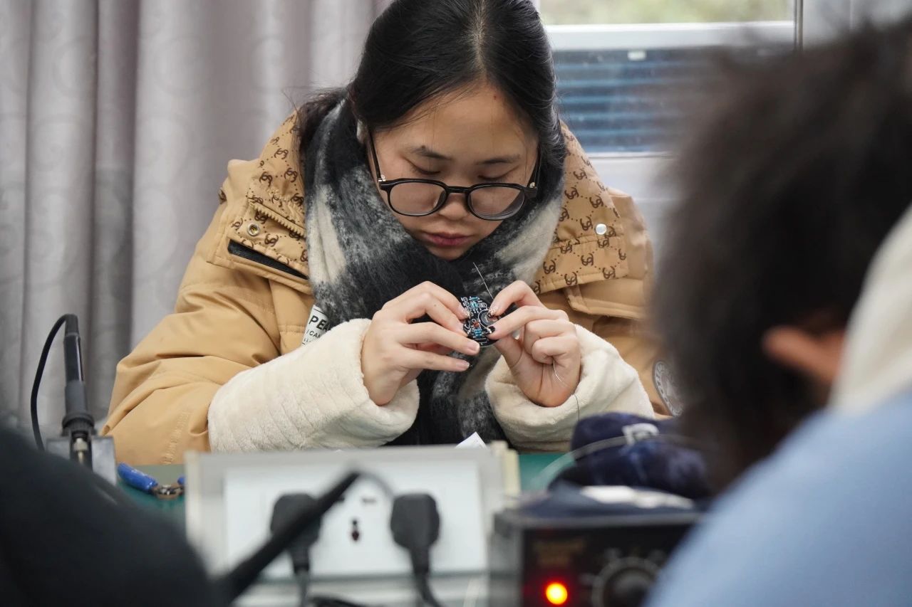 为提升同学们的实践技能与创新思维,电子与信息工程学院科技创新就业部于12月12日下午成功举办了“焊出精彩,转动未来”电子陀螺焊接活动。在活动现场,先进的焊接设备整齐排列,工作人员在详细阐述了焊接陀螺的原理及安全注意事项后,向同学们展示了操作流程。随后,同学们积极参与焊接实践,最终制作出精美的电子陀螺。通过这次活动,同学们不仅锻炼了动手能力,还激发了对电子工程领域的兴趣和热情。