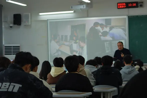 郑应松老师从顶层设计、思想准备、方法论三个方面,详细阐述了如何在“挑战杯”赛事中脱颖而出。他强调,参加任何竞赛前,学生们必须做好充分的思想准备,决不能半途而废。“要做到肯吃苦、能吃苦、乐于吃苦,挑战杯是一个长时间的历练过程,只有全身心投入,才能迎接最终的挑战。”郑老师的讲话内容深入浅出,让同学们深刻认识到参与比赛不仅仅是为了获奖,更是一个锻炼和提升的过程。