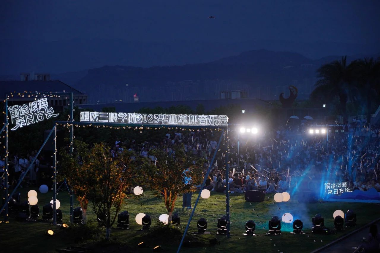 蝉鸣疏叶送夏凉,弦歌绕坪意未央。5月30日晚,重庆三峡学院“前途似海,来日方长”2025毕业草坪音乐会在图书馆大草坪圆满落幕。两千余名师生伴着暮色晚风相聚,在旋律与掌声中勾勒青春的剪影,为毕业季镌刻下温暖注脚。