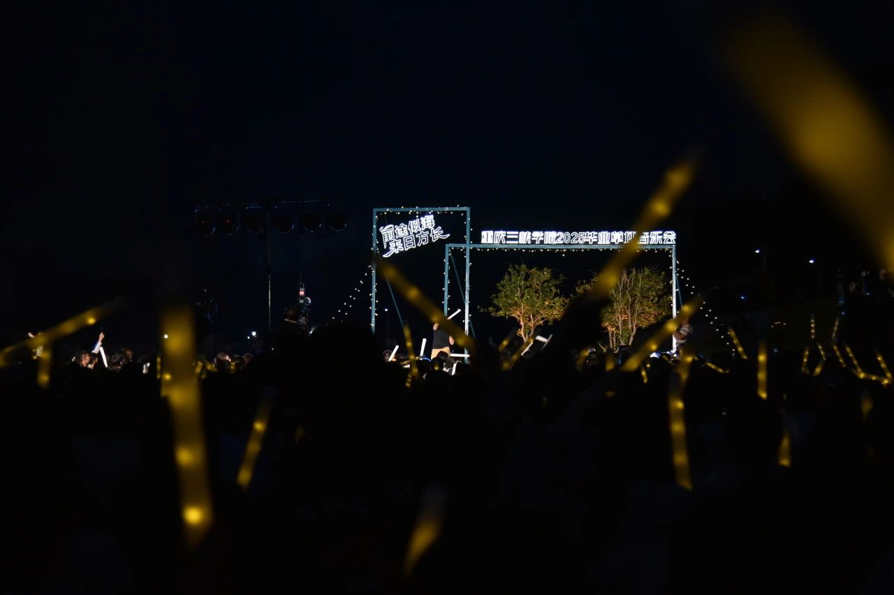 曲终人未散,同学们挥舞着荧光棒一同歌唱,晚风与灯海在歌声中交融。这场持续两小时的音乐盛会,既是对青春岁月的深情回眸,更是对未来征途的壮行。祝2025届毕业生携着草坪上的灯辉,在更广阔的天地间续写“前途似海,来日方长”的人生乐章。