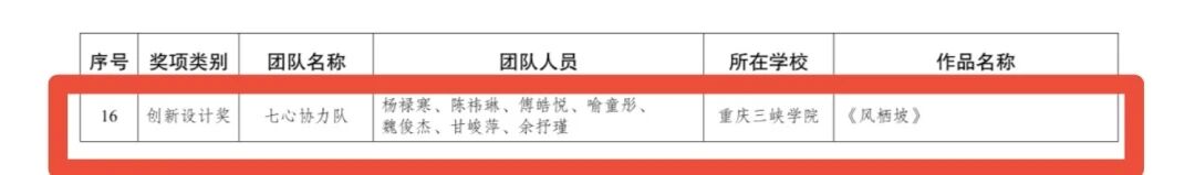 近日,由团市委、市规划自然资源局、市住房城乡建委、市城市管理局、沙坪坝区委联合举办的“好young的新重庆好样的新青年”重庆市第一届城市微更新青年设计改造大赛暨小微空间城市设计竞赛圆满落幕。经激烈角逐,经大赛组委会严格评审,我校“七心协力队”凭借作品《风栖坡》荣获“创新设计奖”。